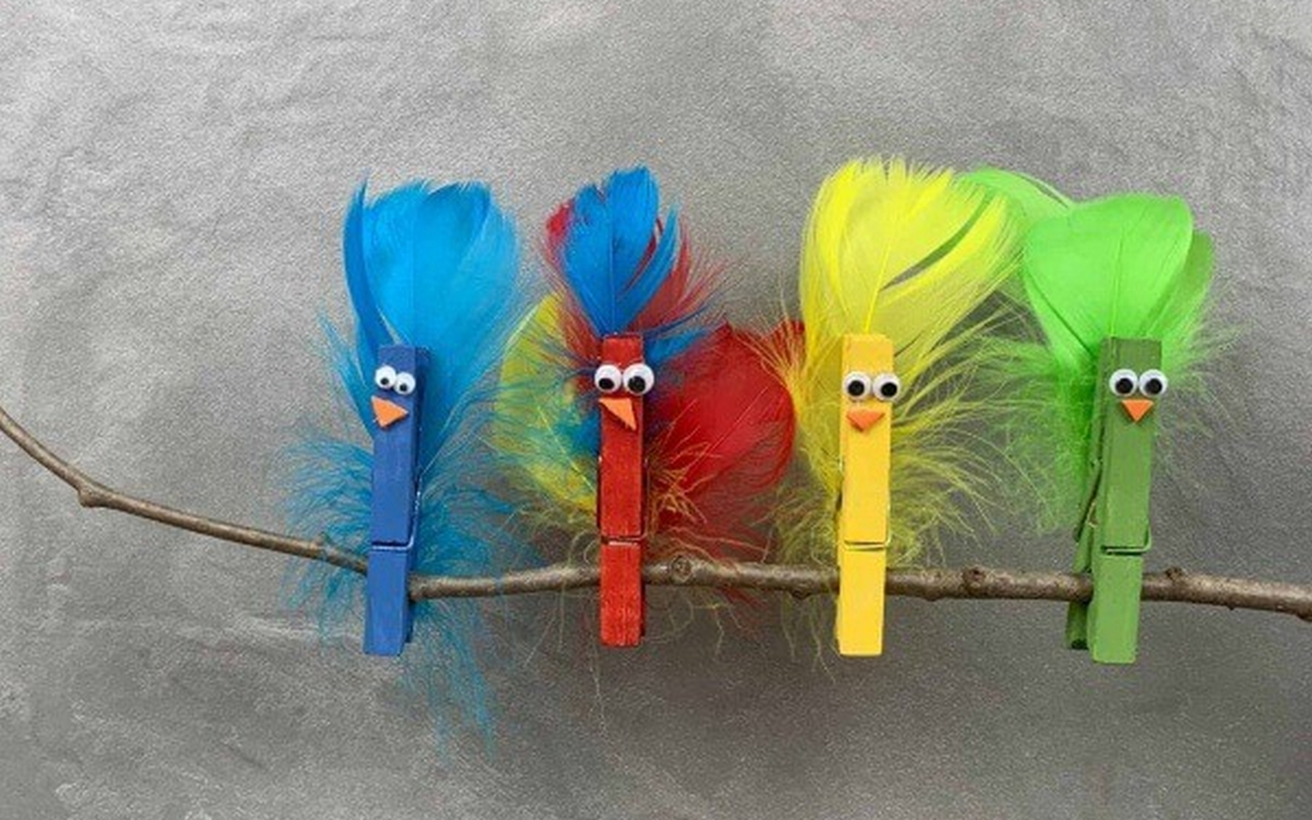 They appear cute and are easy to create. Start by painting the wooden clothespin, and don’t forget to glue small black buttons as the googly eyes and the nose. Of course, the orange chart papers shaped well, and cut nicely would also appear as good as the birds.