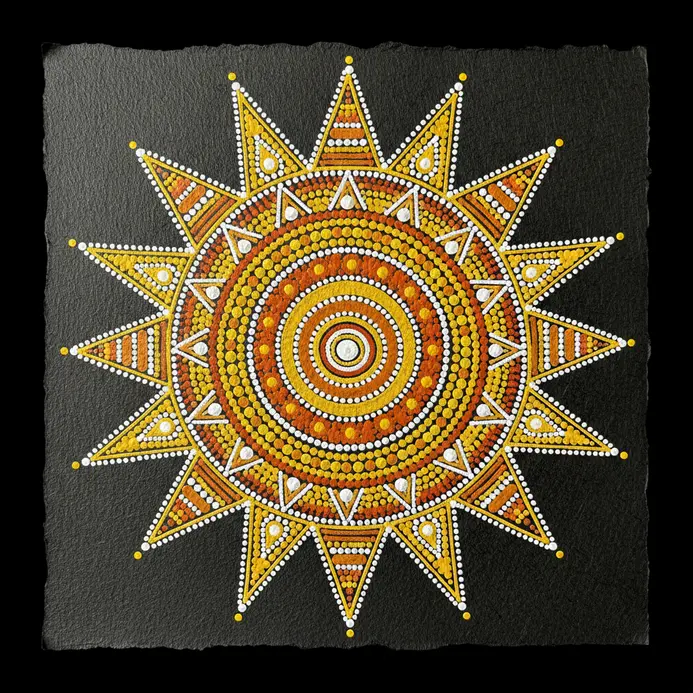 This design connects artists to a deep tradition of honoring life and nature. Embrace slight asymmetry in wavy rays to achieve an organic, authentic appearance.