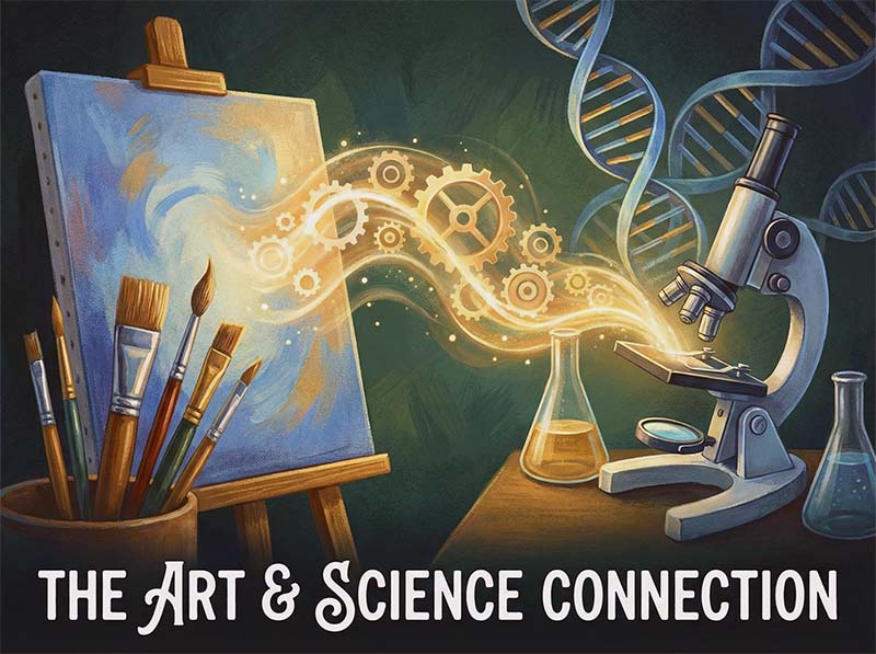 We often think of the “scientific method” as something that happens only in a lab. But art practice is built on the same kind of methodology. An artist has an idea (hypothesis), they try a technique (experiment), they see if it works (analysis), and they try again (iteration). This creating art process mirrors scientific inquiry.